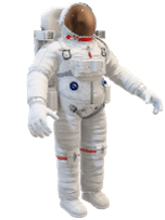 最後に単位四元数の性質を利用してランダムな方位状態における角度差の分布について考えてみましょう。数式だけだとイメージしにくいと思いますので、何らかの形状を持つ物体を例に説明します。例えば、次のような宇宙飛行士について考えてみましょう。この宇宙飛行士は、上下左右は非対称であり、恒等変換以外の対称要素は有さない形状をしているとします。